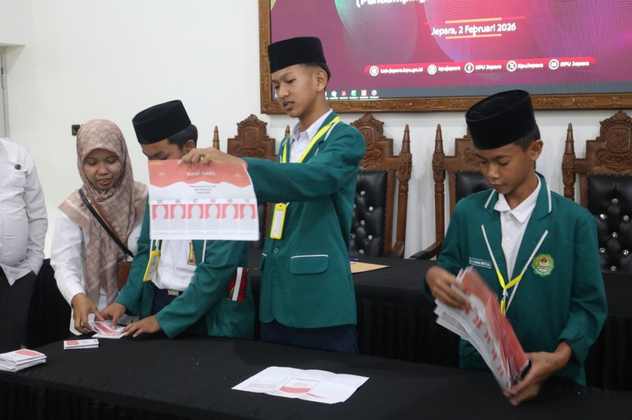 Kab.jepara.kpu.go.id – Komisi Pemilihan Umum (KPU) Kabupaten Jepara menyelenggarakan kegiatan Pendidikan Pemilih Segmen Pemilih Pemula dengan tema Pelatihan Pelaksanaan Tahapan Pemilihan Ketua OSIS yang dilaksanakan di Kantor KPU, Senin (2/2/2026). Kegiatan ini diikuti oleh panitia penyelenggara pemilihan ketua OSIS yang merupakan siswa/i MTs Matholibul Huda Mlonggo, yang akan melaksanakan pemilihan ketua OSIS pada 11 Februari mendatang. Kegiatan ini bertujuan memberikan pemahaman kepemiluan sejak dini agar pelaksanaan pemilihan di lingkungan sekolah dapat berjalan secara demokratis, jujur, dan berintegritas. Kegiatan dibuka secara resmi oleh Ketua KPU Kabupaten Jepara Ris Andy Kusuma yang dalam sambutannya menekankan pentingnya pendidikan pemilih bagi generasi muda sebagai bagian dari pembentukan karakter demokratis sejak dini. “Pendidikan pemilih bagi pemilih pemula sangat penting untuk menanamkan nilai-nilai demokrasi, kejujuran, dan tanggung jawab. Melalui simulasi pemilihan ketua OSIS ini, adik-adik dapat belajar langsung bagaimana proses demokrasi berjalan secara benar, mulai dari tahapan hingga penghitungan suara,” ujar Ris Andy. Ia juga berharap pengalaman ini dapat menjadi bekal bagi para siswa ketika kelak berpartisipasi dalam pemilu dan pemilihan di tingkat yang lebih luas. Turut hadir dalam kegiatan tersebut anggota KPU Kabupaten Jepara Muhammadun, Haris Budiawan, dan Siti Suryani, yang didampingi Sekretaris KPU Kabupaten Jepara Yuyun Sri Agung. Hadir pula Budiyanto dari MTs Matholibul Huda Mlonggo yang mewakili kepala madrasah. Rangkaian kegiatan diawali dengan pendidikan pemilih yang disampaikan oleh Muhammadun, dengan materi pengenalan demokrasi, prinsip-prinsip pemilu, serta tahapan pemilihan. Selanjutnya, kegiatan dilanjutkan dengan simulasi pemungutan dan penghitungan suara yang dipandu oleh Haris Budiawan, sehingga peserta dapat memahami secara praktis proses pemilihan. Sebagai penutup, para peserta mengunjungi Lorong Pintar KPU untuk menambah wawasan kepemiluan melalui berbagai sarana edukasi yang tersedia. Melalui kegiatan ini, KPU Kabupaten Jepara berharap dapat meningkatkan pemahaman pemilih pemula serta mendorong terselenggaranya pemilihan ketua OSIS yang demokratis dan berintegritas di lingkungan madrasah/sekolah. (kpujepara) ....