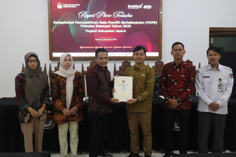 Dalam rapat pleno terbuka itu, ditetapkan rekapitulasi Daftar Pemilih Berkelanjutan Triwulan Keempat Tahun 2025. Jumlah pemilih Kabupaten Jepara terbaru tercatat ada 965.436 pemilih.
