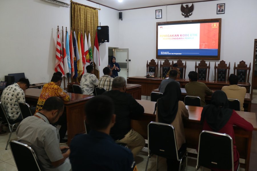Anggota KPU Kabupaten Jepara Divisi Hukum dan Pengawasan Siti Suryani menyampaikan pemahaman regulasi yang mengatur kode etik wajib dipahami oleh seluruh jajaran agar seluruh kerja-kerja yang dilakukan tidak menyalahi aturan-aturan yang ada. “Menjaga kode etik penyelenggara pemilu sangat penting untuk memastikan bahwa proses pemilu berjalan dengan jujur, adil, dan transparan,” terang Suryani.