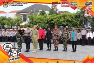 Kpujepara.go.id – Potensi masalah dalam pemilu 2019 harus dideteksi secara dini, dan secara bersama-sama dicegah agar tak terjadi. Kerawanan itu bisa timbul dari banyak sisi, yaitu penyelenggaraan, keamanan, dan ketertibaan masyarakat. Hal itu dikemukakan Kapolres Jepara AKBP Arif Budiman Bersama Dandim Jepara Letkol Czi Fachrudi Hidayat saat membacakan sambutan dari Menkopolhukam Wiranto dalam Apel Serentak Pemilu 2019 di halaman Mapolres Jepara, Jumat (22/3) pagi. Hadir di antaranya Bupati Jepara Ahmad Marzuqi bersama Forkompimda. Hadir juga anggota KPU Jepara Muhammadun dan anggota Bawaslu Jepara Abd Kalim, perwakilan seluruh peserta pemilu, serta stakeholder keamanan. Menkopolhukam dalam sambutannya sebagaimana disampaikan kapolres menekankan pentingnya profesionalitas penyelenggara pemilu, baik KPU, Bawaslu maupun Dewan Kehormatan Penyelenggara Pemilu (DKPP). Selain itu juga membutuhkan peran penting TNI/Polri dalam menjaga keamanan dan stabilitas. Pemilu penting untuk memilih para pemimpin di setiap tingkatan. Opini tentang pemilu diharapkan tidak diarahkan untuk membenturkan kepentingan. Pemilu untuk memilih pemimpin, bukan mengadu. Di antara bentuk kerawanan dalam pemilu adalah beredarnya kabar hoaks dan politik identitas. Hoaks dengan tujuan politik menjadikan demokrasi tak sehat. Politik identitas dengan membawa-bawa isu SARA bisa mengakibatkan disintegrasi dan hilangnya rasionalitas dalam menentukan pilihan politik. Hal itu masuk dalam kategori teror karena memengaruhi psikologis masyarakat. Karenanya, pelaku ditindak dengan langkah hukum yang tegas. Menkopolhukam, sebagaimana disampaikan kapolres juga menyatakan pada pemilu 2019, anggota TNI/Polri yang bersiap menjaga keamanan stabilitas negara sebanyak 453.133 orang. Mereka didukung dengan alutsista yang memadai. Dalam apel serentak, juga dilakukan deklarasi netralitas TNI/Polri dan aparatur sipil negara (ASN) dalam pemilu 2019. Disusul kemudian deklarasi peserta pemilu, dimana mereka siap menggelar kampanye rapat umum sesuai ketentuan regulasi, siap menyalurkan hak pilih dan menjaga persatuan dan kesatuan, serta siap menyukseskan pemilu 2019 yang berintegritas dan bermartabat tanpa hoaks, politik uang dan politik SARA. Kampanye rapat umum berlangsung 24 Maret hingga 13 April 2019. Sedangkan dari masyarakat, mereka berikrar untuk turut menjaga keamanan dan ketertiban di lingkungan dan tempat kerja masing-masing. Mereka juga berikrar untuk menyalurkan hak pilih pada pemilu yang akan berlangsung 17 April nanti serta siap menjaga persatuan dan kesatuan. (muh/kpujepara).