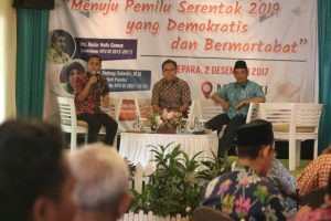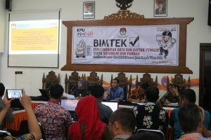 Jepara – Komisi Pemilihan Umum (KPU) Kabupaten Jepara menggelar rapat kerja dan bimbingan teknis Pemutakhiran data dan daftar pemilih serta Sosialisasi, Pendidikan Pemilih dan Partisipasi Masyarakat, Rabu (10/1/). Sebanyak 48 peserta, yang terdiri dari tiga perwakilan anggota PPK (ketua, Divisi Mutarlih dan Devisi Sosialisasi ), masing masing Kecamatan di Jepara, mengikuti acara yang digelar secara bersamaan di Kantor KPU Jepara tersebut. Divisi SDM dan Parmas KPU Kabupaten Jepara, Subchan Zuhri menyampaikan PPK mutlak harus menguasai dan update seluruh Informasi dan tahapan yang sedang berjalan, dan meneruskann informasi kepada PPS serta masyarakat luas. “PPK berkewajiban menyampaikan informasi tahapan dan pendidikan pemilih kepada Masyarakat” tambahnya. Peraturan KPU Nomor 8 Tahun 2017 tentang Sosialisasi, Pendidikan Pemilih dan Partisipasi Masyarakat mengamanatkan kepada penyelenggara pemilu untuk melakukan sosialisasi serta pendidikan pemilih dalam rangka meningkatkan partisipasi masyarakat. “Kita (penyelenggara, red) tidak hanya sekadar menyampaikan sosialisasi tahapan. Tetapi harus juga melakukan pendidikan pemilih untuk meningkatkan pengetahuan, pemahaman dan partisipasi masyarakat,” tandasnya. Dalam rangkaian kegiatan sosialisasi dan pendidikan pemilih, KPU membagi segmen pemilih dalam bebrerapa kelompok. Segemen pemilih yang akan disasar dalam kegiatan sosialisasi dan pendidikan pemilih seperti keluarga, pemilih pemula, pemilih muda, pemilih perempuan, pemilih berkebutuhan khusus, penyandang disabilitas, pemilih marginal, komunitas, keagamaan, relawan demokrasi, warga internet (netizen), masyarakat umum, media massa, parpol, pengawas, pemantau, ormas, masyarakat adat, dan intansi pemerintah. Subchan menambahkan, sosialisasi dan pendidikan pemilih menjadi satu rangkaian kegiatan yang wajib dijalankan penyelenggara pemilu. Metode yang dapat dilakukan bisa dengan mealui forum warga, pertemuan tatap muka, melalui media massa, penyebaran bahan sosialisasi, mobilisasi massa, pagelaran budaya, menggunakan laman website kpu atau papan pengumuman, media social, media kreasi dan kegiatan lain yang memudahkan masyarakat. “Terkait pemanfaatan media sosial, penyelenggara pemilu harus bias memanfaatkannya untuk sosialisasi dan pendidikan pemilih. Saat ini pengguna media sosial sudah sangat banyak dan harus dimanfaatkan dengan maksimal,” terangnya. Saat ini, lanjut Subchan, KPU RI juga telah mencanangkan pendidikan pemilih berbasis keluarga. Dalam Pilgub Jateng kali ini, KPU Jepara dan jajaran penyelenggara di bawah (PPK, PPS, KPPS dan PPDP) harus mendukung gerakan ini melalui sosialisasi di lingkup keluarga sebagai komunitas masyarakat paling bawah. Selain itu ada juga gerakan sadar pemilu yang telah dicanangkan KPU RI. Gerakan sadar pemilu ini mesti kita kampanyekan ke seluruh sekmen masyarakat untuk meningkatkan kualitas pemilu. “Tujuan dari semua kegiatan itu KPU berharap masyarakat secara sukarela aktif berpartisipasi dalam setiap tahapan pelaksanaan Pilkada Serentak Tahun 2018,” katanya. (f2@/hupmas KPU Jepara)