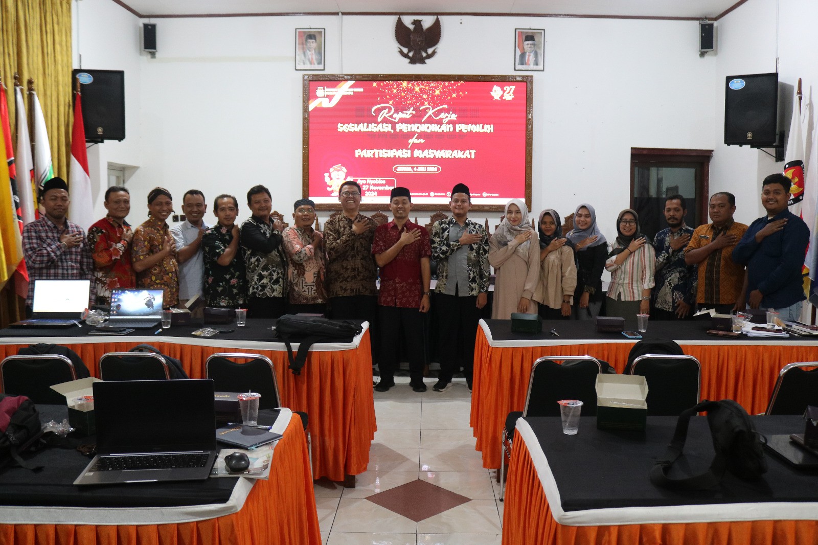 Kab-jepara.kpu.go.id - KPU Kabupaten Jepara menggelar rapat kerja sosialisasi, pendidikan pemilih dan partisipasi masyarakat bersama Panitia Pemilihan Kecamatan (PPK) se-Jepara, Kamis (4/7/2024). Rapat kerja (rapat kerja) yang diselenggarakan di aula KPU Jepara membahas alur kerja, rumusan dan strategi sosialisasi guna meningkatkan partisipasi masyarakat masyarakat pada pilkada 2024. Ketua Divisi Sosialisasi, Pendidikan Pemilih, Partisipasi Masyarakat (Sosdiklih Parmas) dan SDM KPU Kabupaten Jepara Muhammadun memimpin jalannya raker. Hadir juga Kasubbag Teknis Penyelenggaraan Galih Prasetyo beserta staf. Sebelum memulai raker, Muhammadun memberikan arahan tentang tugas Divisi Sosdiklih dan Parmas. "Kita harus memetakan kegiatan dan tahapan apa saja yangg harus disampaikan ke masyarakat. Sehingga penting untuk membuat rumusan dan strategi yang akan digunakan untuk mensosialisasikan setiap kegiatan dan tahapan pilkada,” kata Muhammadun. Dalam kegiatan tersebut, focus raker adalah Upaya untuk mengoptimalkan media social yang dikelola Badan Adhoc, yaitu PPK dan Panitia Pemungutan Suara (PPS). Muhammadun memulai dengan agenda strategis selama Juli dan Agustus 2024, yaitu tahapan penyusunan daftar pemilih dan pencalonan. “Banyak informasi pilkada yang harus disampaikan ke Masyarakat, baik terkait penyusunan daftar pemilih maupun pencalonan,” kata dia. Saat ini, kata dia, masih berlangsung pencocokan dan penelitian (coklit) terhadap pemilih yang dilakukan oleh petugas pemutakhira data pemilih atau pantarlih. Coklit akan berlangsung sampai 24 Juli. Setelah itu adalah penyusunan daftar pemilih sementara (DPS). Ada ruang partisipasi Masyarakat di tahapan ini, sehingga PPK dan PPS harus mensosialisasikan informasinya. Setelah itu, pada 27-29 Agustus nanti adalah pendaftaran pasangan calon bupati dan wakil bupati. “Sudah ada peraturan KPU terkait pencalonan, yaitu PKPU Nomor 8 tahun 2024. Maka hal-hal yang terkait pencalonan mesti disampaikan ke public,” lanjut dia. Muhammadun juga menyampaikan langkah taktis dan strategis komunikasi media sosial badan adhoc kepada publik. Ia menekankan agar seluruh badan adhoc selalu aktif menggunakan media sosial untuk menyampaikan informasi setiap kegiatan serta rincian tahapan, baik yang sedang maupun akan dilaksanakan. Karena hal tersebut sebagai bentuk transparansi KPU dalam menyelenggarakan setiap tahapan pilkada. (kpujepara)
