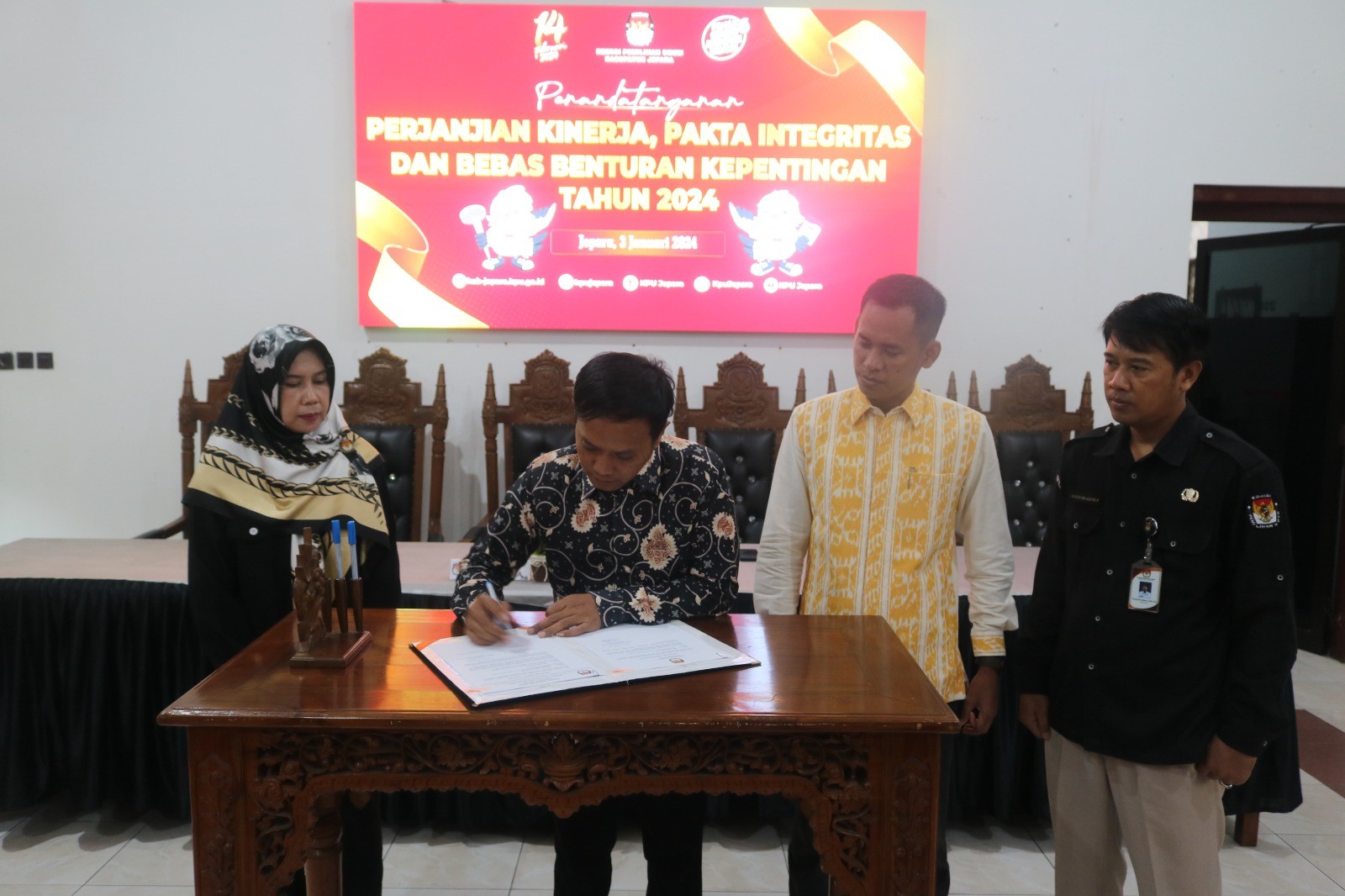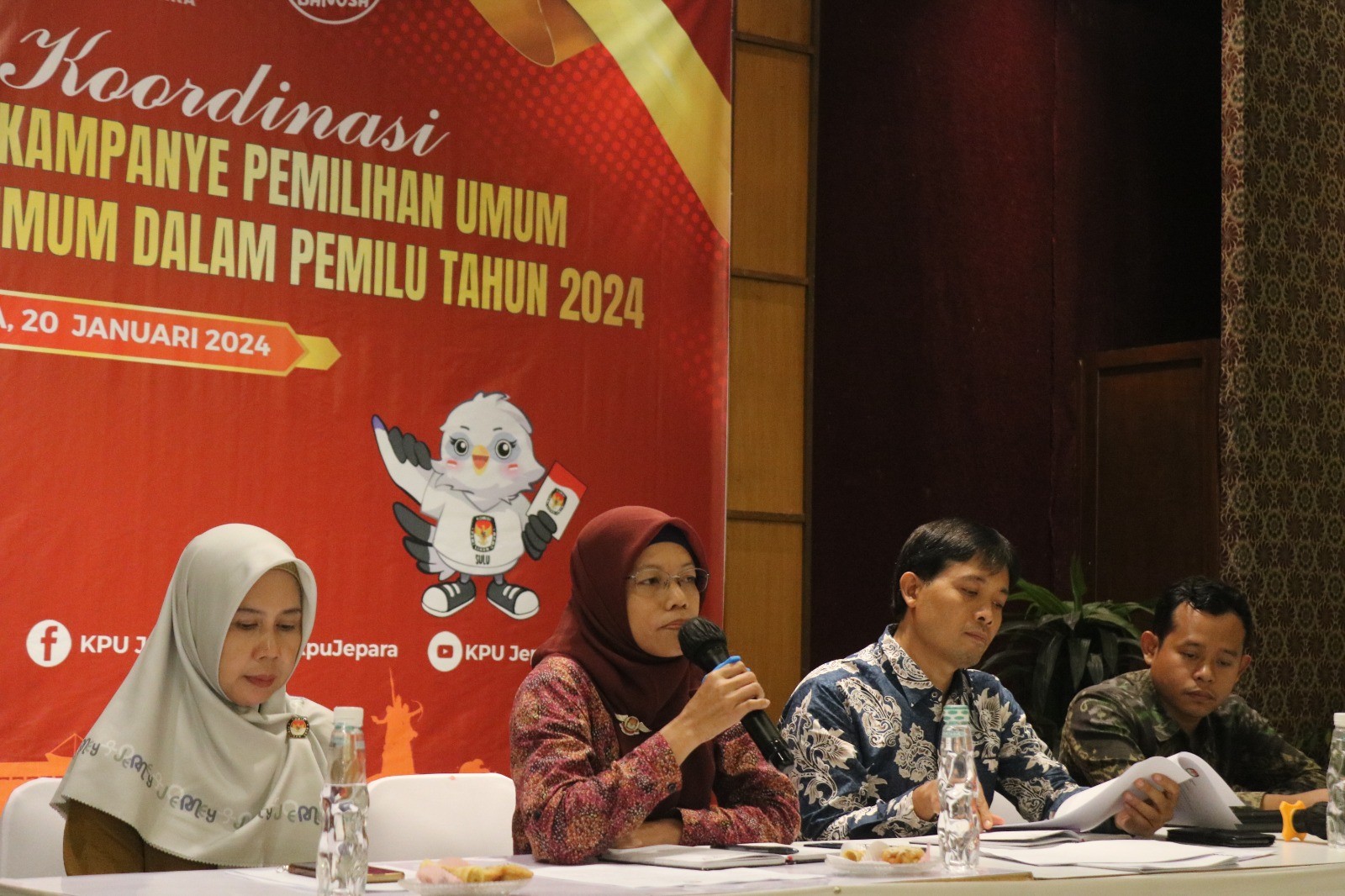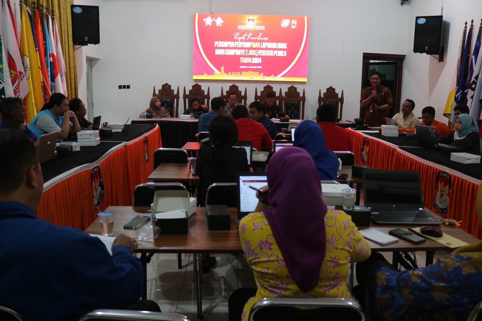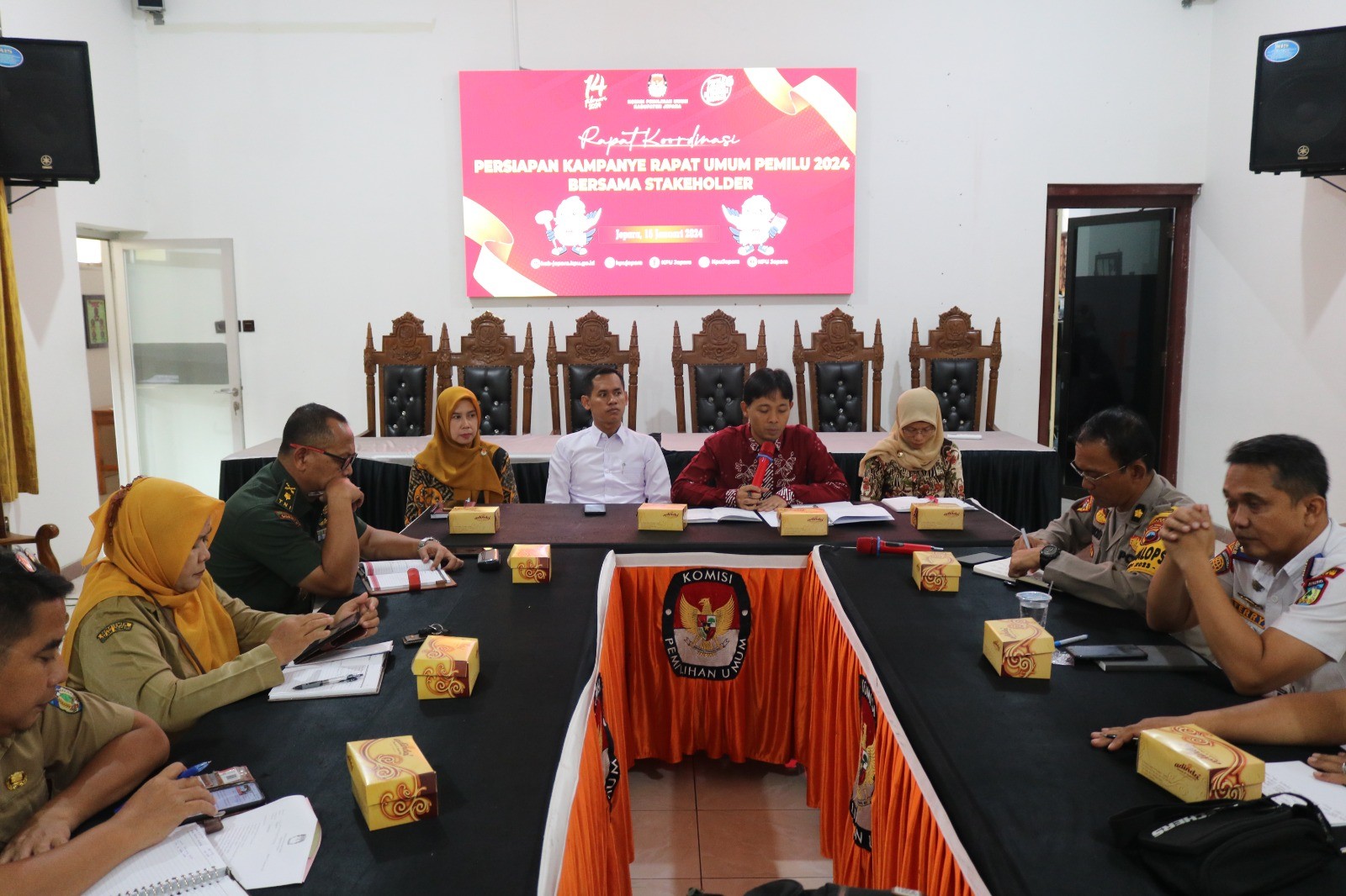 Kab-jepara.kpu.go.id – KPU Kabupaten Jepara mengeluarkan Keputusan KPU Nomor 20/2024 tentang Penetapan Jadwal Kampanye Pemilihan Umum melalui Metode Rapat Umum anggota DPRD Kabupaten Jepara pada Pemilu 2024, Sabtu (20/1/2024). Keputusan tersebut menjadi pedoman pelaksana kampanye semua peserta pemilu terkait kampanye rapat umum yang berlangsung pada 21 Januari-10 Februari 2024. KPU Kabupaten Jepara telah menyampaikan keputusan tersebut kepada pelaksana kampanye pada 20 Januari, dan salinannya disampaikan kepada Pemkab, Bawaslu, dan Polres. “Ketentuannya, setelah ditetapkan keputusan, maka disampaikan ke pelaksana kampanye paling lambat satu hari sebelum pelaksanaan kampanye rapat umum. Termasuk salina Keputusan tersebut juga kami sampaikan ke Pemkab, Bawaslu, dan Polres Jepara,” kata Muhammadun, ketua Divisi Sosialisasi, Pendidikan Pemilih, Partisipasi Masyarakat, dan SDM KPU Jepara, Sabtu (20/1). Sebelum Keputusan KPU tersebut ditetapkan, KPU Kabupaten Jepara berkoordinasi dengan stakeholder seperti Pemkab, Polres, Kodim, dan Bawaslu. Selain itu, kata Muhammadun sebagaimana ketentuan Pasal 49 Ayat (2) PKPU Nomor 15/2023, KPU juga menengarkan masukan dan tanggapan dari pelaksana kampanye peserta Pemilu 2024. “Para pelaksana kampanye dari semua parpol dan pasangan calon sebelum Keputusan KPU Kabupaten Jepara Nomor 20/2024 ini ditetapkan, juga menandatangani berita acara kesepakatan jadwal kampanye rapat umum,” kata Muhammadun. Ia menjelaskan jadwal kampanye rapat umum yang telah ditetapkan dalam Keputusan KPU Kabupaten Jepara itu mengacu pada Keputusan KPU Nomor 78 tahun 2024 tentang Penetapan Jadwal Kampanye Pemilihan Umum melalui Metode rapat Umum dalam pemilihan Umum Tahun 2024 yang ditetapkan pada 17 Januari 2024. “Untuk Kabupaten Jepara, jadwal kampanye rapat umum dapat dilihat di website kab-jepara.kpu.go.id. Jadwalnya selama 21 hari dan berurutan, yakni tanggal 21 Januari untuk pasangan calon presiden dan wakil presiden nomor urut 01 beserta parpol pengusul, berikutnya 22 Januari untuk paslon nomor urut 02 beserta parpol pengusul, serta 23 Januari untuk paslon nomor urut 03 beserta parpol pengusul. Demikian seterusnya berurutan sampai dengan tanggal 7 Februari. Jadwal ini juga sama di semua kabupaten/kota di Jawa Tengah,” kata Muhammadun. Untuk tanggal 8,9, dan 10 Februari atau tiga hari terakhir sebelum masa tenang, lanjut Muhammadun, ketentuannya adalah tanggal 8 Februari untuk paslon nomor urut 02 beserta parpol pengusul, dan tanggal 10 Februari untuk Paslon 03 beserta parpol pengusul. Untuk paslon nomor urut 01, tanggal 9 Februari tidak mengambil di kabupaten/kota di Jawa Tengah, tetapi di Sidoarjo (Jawa Timur). “Pelaksanaan kampanye rapat umum sesuai jadwal itu dimulai pukul 09.00 dan berakhir paling lambat pukul 18.00,” kata Muhammadun. Pada Sabtu (20/1), KPU Jepara menyampaikan jadwal itu ke palaksana kampanye dari semua parpol dan tim pemenangan di Hall Resto Maribu. Hadir juga anggota KPU Jepara Siti Nurwakhidatun dan Siti Suryani, serta Sekretaris KPU Yuyun Sri Agung P. Hadir pula perwakilan Forkopimda, dinas terkait, dan Bawaslu. Kabag Ops Polres Jepara Sutono dalam kesempatan itu mengimbau agar pelaksanaan kampanye rapat umum yang ada konvoi, tetap mematuhi peraturan lalu lintas. Termasuk didalamnya larangan pengunnaan knalpot brong. Anggota Bawaslu Jepara Khoirul Abidin menyatakan, pelaksana kampanye agar mematuhi segala peraturan perundang-undangan yang berlaku dalam pelaksanaan kampanye rapat umum, termasuk Keputusan KPU Kabupaten Jepara yang ditetapkan sebagai pedoman. (kpujepara)