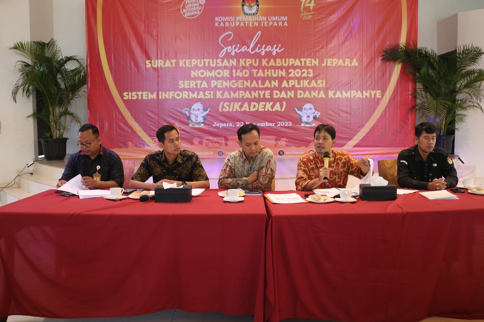 Kab-jepara.kpu.go.id - Kebutuhan informasi publik mengenai tahapan Pemilu 2024 makin besar. KPU sebagai penyelenggara pemilu harus dapat mengisi kebutuhan publik tersebut. Dalam menjawab kebutuhan tersebut KPU dapat menjalin mitra dengan media masa dalam mempercepat serta memperluas pendistribusian informasi mengenai dinamika tahapan pemilu ke publik. Hal tersebut disampaikan anggota KPU Kabupaten Jepara Muhammadun dalam kegiatan sosialisasi peraturan KPU Nomor 20 Tahun 2023 tentang perubahan atas peraturan KPU nomor 15 Tahun 2023 tentang Kampanye Pemilu, Kamis (23/11/2023) di Vinn Villa Resto and Cafe, Kecamatan Tahunan. Kegiatan tersebut dihadiri oleh Ketua KPU Kabupaten Jepara Ris Andy Kusuma dan diikuti tiga komisioner lainnya, yaitu Muhammadun, Haris Budiawan, dan Siti Nurwakhidatun serta Sekretaris KPU Yuyun Sri Agung P. Kegiatan tersebut dihadiri pula oleh pewarta media massa di Jepara. Ris Andy Kusuma menyampaikan secara faktual dinamika yang dilalui KPU dalam menjalankan tahapan Pemilu 2024. Ia juga menjawab banyak pertanyaan publik baik terkait tahapan kampanye maupun isu-isu yang ada terkait persiapan KPU dalam menyongsong Pemilu 2024. Dalam kesempatan tersebut Muhammadun menyampaikan subtansi peraturan KPU Nomor 20 Tahun 2023 tentang perubahan atas Peraturan KPU Nomor 15 Tahun 2023 tentang Kampanye Pemilu. Muhamamdun menjelaskan kebijakan kampanye oleh KPU terhadap partai politik mulai dari materi kampanye, metode kampanye maupun pelibatan sistem teknologi sistem informasi kampanye dan dana kampanye (Sikafeka) dalam proses tahapan kampanye yang dilalui oleh partai politik. Selain itu Muhammadun juga menjelaskan bahwa KPU Kabupaten Jepara telah menerbitkan Keputusan KPU Kabupaten Jepara Nomor 140 Tahun 2023 tentang Penetapan Tempat/Lokasi yang Dilarang untuk Pemasangan Alat Peraga Kampanye pada Pemilihan Umum dan Pemilihan Kepala Daerah tahun 2024 di Kabupaten Jepara. “Dalam regulasi yang mengatur mengenai kampanye erat dan bertalian dengan media massa,” kata Muhammadun. Ia menjelaskan wajib menyalurkan informasi mengenai regulasi tersebut kepada media massa. Dalam kesempatan yang sama anggota KPU Kabupaten Jepara Divisi Perencanaan, Data dan Informasi Siti Nurwakhidatun menyampaikan mengenai dinamika mengenai proses pemutakhiran data pemilih yang ada di Kabupaten Jepara. “Daftar Pemilih Tetap (DPT) telah ditetapkan oleh KPU Kabupaten Jepara pada 21 Juni 2023 dan telah diumumkan ke publik,” kata Siti. Lebih lanjut Siti menjelaskan saat ini KPU masih dalam proses-proses pemeliharaan DPT. “Kami KPU berkomitmen melindungi hak pilih pada setiap masyarakat yang telah memiliki hak pilih,” kata Siti. Haris Budiawan, anggota KPU Kabupaten Jepara Divisi Teknis Penyelenggaraan juga menjelaskan mengenai tahapan pencalonan anggota DPRD Kabupaten Jepara yang ada. “Daftar Calon Tetap telah ditetapkan oleh KPU Kabupaten Jepara pada 3 November 2023,” kata Haris. Ia menjelaskan terdapat satu calon yang masih tercatat pada pekerjaan wajib mundur dan belum menyerahkan surat keputusan pemberhentian ke KPU. “KPU sebagaimana diatur dalam regulasi masih menunggu hingga 3 Desember 2023 ini,” kata Haris.