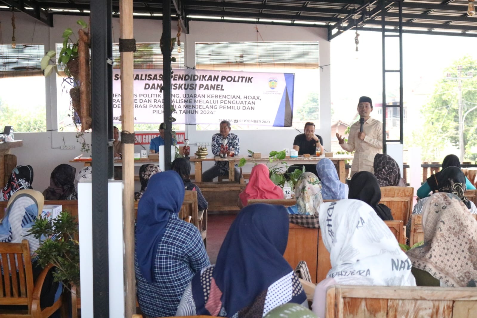 Kab-jepara.kpu.go.id- Salah satu hal baru yang ada pada Kurikulum Merdeka di dunia pendidikan adalah Projek Penguatan Profil Pelajar Pancasila (P5). Sebuah pendekatan baru dimana pembelajaran yang dilaksanakan oleh siswa dapat dirancang sedemikian rupa sehingga diharapkan meningkatkan tak hanya kompetensi melainkan juga meningkatkan karakter keimanan, kebhinekaan, kemandirian, gotong royong, bernalar kritis dan kreatif. SMA Negeri 1 Bangsri menggandeng KPU Kabupaten Jepara melalui Panitia Pemilihan Kecamatan mengaplikasikan Kurikulum Merdeka dengan menggelar kegiatan Suara Demokrasi dalam bentuk pemilihan ketua OSIS atau pilkatos. Ketua Penitia Pemilihan Kecamatan (PPK) Kecamatan Bangsri Abdul Ghoni yang mendapatkan tugas dari Komisi Pemilihan Umum (KPU) Kabupaten Jepara hadir dalam pembukaan acara Projek Penguatan Profil Pelajar Pancasila di SMA Negeri 1 Bangsri tersebut. Kepala SMA Negeri 1 Bangsri Ngaripah menyampaikan bahwa kegiatan Gelar Karya P5 Bertema Suara Demokrasi ini merupakan salah satu langkah dalam mengenalkan dan memberikan pengalaman berdemokrasi bagi peserta didik. Kepala sekolah juga mengharapkan agar peserta didik dapat merealisasikan pengalaman ini dalam kehidupan di masyarakat nantinya pada saat mereka telah memenuhi syarat sebagai pemilih dalam pemilu. Setelah acara dibuka oleh kepala sekolah, Ketua PPK Bangsri Abdul Ghoni dalam sambutannya mengapresiasi SMA Negeri 1 Bangsri yang telah mempersiapkan dan melaksanakan kegiatan dengan sangat baik. Berbagai ragam bentuk dibuat sangat atraktif. Ada TPS yang dibuat dengan gaya Bali, Jawa, dll. “Permbuatan TPS yang atraktif ini tentu dapat memantik daya tarik pemilih. Para siswa bisa berpartisipasi maksimal. Partisipasi dalam berdemokrasi adalah hal yang substansial,” kata Abdul Ghoni. Ia juga mengatakan dengan penguatan profil Pancasila diharapkan meningkatkan wawasan dan pengetahuan tentang konsep demokrasi serta menerapkan prinsip-prinsip berdemokrasi yang bermartabat dalam berbagai kegiatan di sekolah dan di masyarakat, sehingga diharapakan tumbuh sifat kebhinekaan global, gotong royong, kreatif dan inovatif. Abdul Ghoni juga menjelaskan sekaligus mensosialisasikan tahapan Pemilu 2024 yang saat ini adalah sedang dalam pencalonan, pelayanan pindah memilih, dan mulai 28 November nanti memasuki tahapan kampanye. Selain itu ia juga mengajak para guru dan siswa untuk mengecek bersama apakah sudah terdaftar di daftar pemilih tetap (DPT) atau belum melalui laman cekdptonline.kpu.go.id. Dalam kegiatan itu juga hadir Ketua Panwaslucam Kecamatan Bangsri Lilik Mabruri. Ia memberikan penekanan pada proses pengawasan pada saat pilkatos berlangsung, supaya tidak terjadi pelanggaran. Diakhir acara, ketua PPK dan ketua Panwaslucam didampingi oleh koordinator P5 mengunjungi TPS yang telah disiapkan oleh KPPS. (kpujepara)