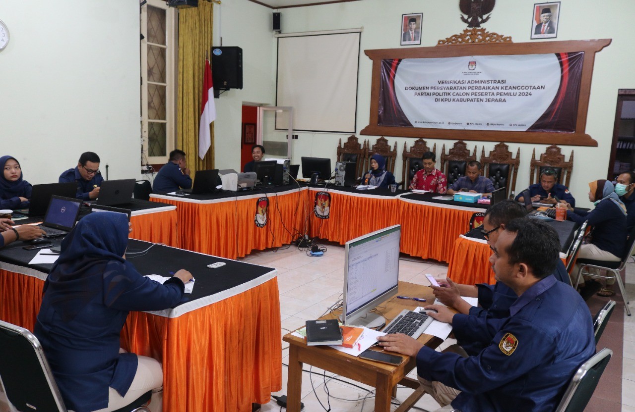 Kab-jepara.kpu.go.id- KPU Kabupaten Jepara melakukan klarifikasi kepada anggota parpol yang belum dapat dipastikan keanggotaannya karena kegandaan eksternal pada verifikasi administrasi perbaikan yang berlangsung 8-9 Oktober 2022. KPU mengklarifikasinya setelah memverifikasi surat pernyataan yang diunggah parpol melalui Sistem Informasi Partai Politik (Sipol). KPU Jepara telah memberitahu perihal klarifikasi itu ke beberapa parpol yang bersangkutan. Anggota KPU Kabupaten Jepara Muhammadun, Sabtu (8/10/2022) siang mengatakan, sesuai dengan keputusan KPU Nomor 384/2022, klarifikasi secara langsung terhadap anggota parpol yang belum dapat ditentukan statusnya akan dilakukan sampai dengan Minggu (9/10/2022). “Dalam verifikasi administrasi di masa perbaikan ini, KPU telah menyampaikan surat pemberitahuan kepada tujuh parpol terkait klarifikasi ini. Hari ini sudah ada beberapa parpol yang menghadirkan anggota yang diklarifikasi ke kantor KPU,” kata Muhammadun. KPU Jepara pada Jumat (7/10) sudah menyampaikan surat pemberitahuan terkait klarifikasi keanggotaan itu kepada tujuh parpol, yakni Partai Perindo, PAN, PKB, Partai Demokrat, PSI, Partai Ummat, dan Partai Prima. Klarifikasi yang dilakukan tersebut terkait keanggotaan ganda eksternal, dimana seseorang dengan identitas yang sama dalam Sipol, terdata di lebih dari satu parpol. “Jika situasinya seperti ini, KPU perlu mengklarifikasi karena status keanggotaannya belum dapat ditentukan, sampai benar-benar bisa jelas statusnya. Memenuhi syarat, atau tidak memenuhi syarat sebagai anggota partai tertentu,” jelas Muhammadun. Ia mengatakan, klarifikasi terhadap keanggotaan parpol yang belum dapat ditentukan statusnya itu diatur dalam Pasal 39 Ayat 1 Peraturan KPU Nomor 4/2022 tentang Pendaftaran, Verifikasi, dan Penetapan Partai Politik Peserta Pemilihan Umum DPR dan DPRD. Secara teknis, KPU Kabupaten Jepara mempedomani Keputusan KPU Nomor 384/2022 tentang Perubahan Keempat atas Keputusan KPU Nomor 260/2022. “Pada verifikasi administrasi perbaikan ini, sesuai dengan pedoman teknis yang diatur dalam Keputusan KPU Nomor 384/2022, tanggal 8-9 Oktober 2022 merupakan jadwal KPU kabupaten/kota melakukan verifikasi terhadap surat pernyataan dugaan keanggotaan ganda dan keanggotaan yang berpotensi belum memenuhi syarat dari parpol. Pada tanggal yang sama juga KPU melakukan klarifikasi secara langsung terhadap anggota parpol yang belum dapat ditentukan statusnya,” kata Muhammadun. Ketua Divisi Teknis Penyelenggaraan KPU Jepara Siti Nurwakhidatun, bersama anggota KPU lainnya, Ris Andy Kusuma dan Muhammadun pada Sabtu (8/10), menemui parpol yang datang ke KPU. Selain itu juga menerima dua anggota Bawaslu Jepara yang melakukan pengawasan, yakni Arifin dan Abd Kalim. Muhammadun mengatakan, KPU Kabupaten Jepara nantinya akan menyampaikan hasil verifikasi administrasi dokumen persyaratan perbaikan keanggotaan parpol ke KPU Provinsi Jawa Tengah pada 11 Oktober 2022, untuk kemudian KPU provinsi, setelah merekapitulasi, akan menyampaikannya ke KPU RI pada 12 Oktober 2022. Rekapitulasi hasil verifikasi administrasi akan disampaikan KPU RI kepada parpol dan Bawaslu RI, sekaligus diumumkan pada 14 Oktober 2022. (kpujepara)