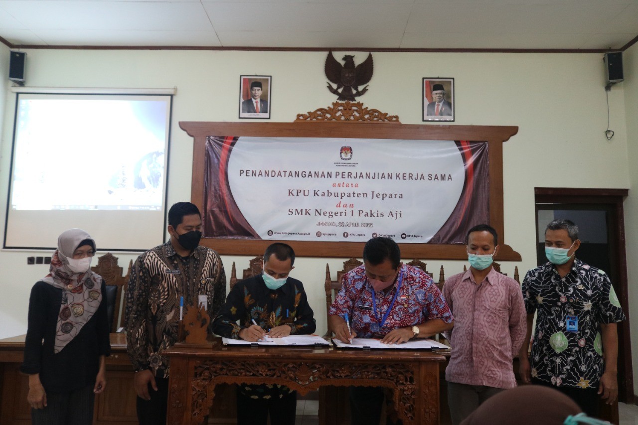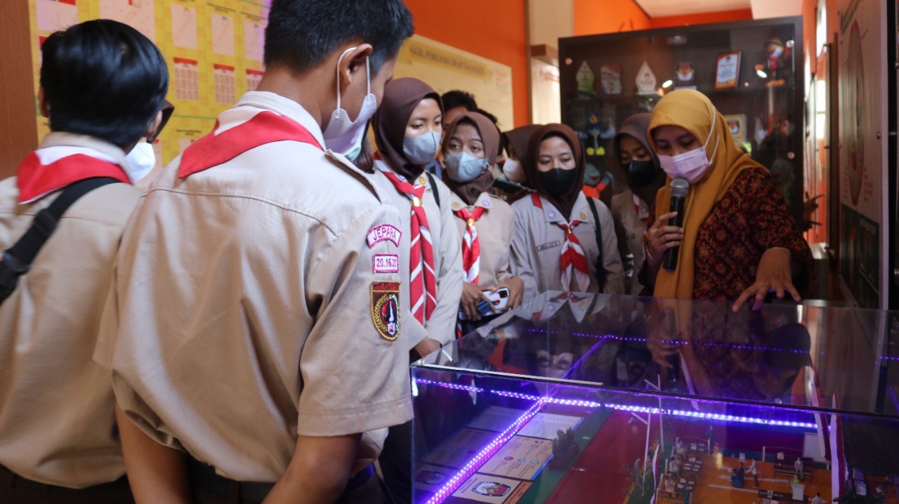 Kab-jepara.kpu.go.id – Sebanyak 20 siswa SMK Negeri 1 Pakis Aji, Jumat (22/4) mengunjungi Lorong Pintar (Lontar) Komisi Pemilihan Umum (KPU) Kabupaten Jepara. Kunjungan tersebut dilakukan setelah mengikuti rangkaian acara penandatanganan perjanjian kerja sama antara KPU Kabupaten Jepara dengan SMK Negeri 1 Pakis Aji. KPU Jepara membuat Lontar pemilu untuk pendidikan pemilih pemula dalam pembelajaran kepemiluan. Hal itu sejalan dengan isi perjanjian kerja sama yang telah ditandatangani Ketua KPU Subchan Zuhri dan Kepala Sekolah SMK Negeri 1 Pakis Aji Bambang Winiharto. Hadir juga anggota KPU lainnya, Ris Andy Kusuma dan Siti Nurwakhidatun. Lorong pintar pemilu yang diresmikan sejak Desember 2017 tersebut berada persis di sebelah aula kantor KPU Jepara. Pada kunjungan tersebut KPU Jepara menjelaskan secara rinci isi dari ruangan mulai dari sejarah pemilu, hasil pemilu dan pilkada, tata cara pemungutan suara, dokumen data pemilih, dan tata kelola pemilu yang meliputi sistem pemilu, kelembagaan penyelenggaraan pemilu, tahapan pemilu, manajemen pemilu serta keadilan pemilu. Hasil pemilu dan pilkada, jumlah pemilih dan tingkat partisipasi masyarakat juga tersedia di Lontar KPU Jepara. Dokumen tersebut diolah secara digital sehingga dapat diakses melalui layer interaktif oleh siswa yang berkunjung. Selain itu, KPU Jepara juga mensosialisasikan penggunaan aplikasi Lindungi Hakmu untuk memastikan diri telah terdaftar sebagai pemilih. Salah satu siswa yang mengikuti kunjungan tersebut, Nur Afifah selaku ketua OSIS SMK N 1 Pakis Aji merasa senang dapat berkunjung ke Lontar KPU Jepara. “Sebelum berkunjung di Lontar, saya tidak tahu seperti apa itu pemilu karena kami belum pernah mengikutinya. Tapi setelah berkunjung saya memiliki pemikiran luas dan lebih tahu seperti apa jalannya pemilu yang untuk kedepannya akan saya terapkan pada pemilihan ketua OSIS di sekolah,” tuturnya. Kepala Sekolah SMK Negeri 1 Pakis Aji Bambang Winiharto berharap kerja sama yang terjalin dengan KPU Jepara tentang pendidikan kepemiluan dapat memberi pengalaman bagi siswanya untuk lebih mengenal jalannya pemilu yang belum pernah dilakukan oleh siswa SMK N 1 Pakis Aji. Mereka yang berkunjung semuanya belum berusia tujuh belas tahun sehingga belum memiliki pengalaman memilih. “Demi tegaknya sistem demokrasi di Indonesia, pembelajaran mengenai pemilu dan pemilih pemula bagi siswa sangat penting. Pembelajaran ini bisa mengajarkan siswa dalam memilih pemimpin,” kata Bambang. Dalam kesempatan yang sama Sekretaris KPU Jepara Da’faf Ali mengajak seluruh siswa, tidak hanya dari SMK N 1 Pakis Aji tetapi juga sekolah lainnya untuk bisa berkunjung ke Lontar di KPU Jepara. ”KPU Jepara membuka lebar kesempatan bagi siswa sekolah lainnya untuk bisa berkunjung ke Lontar. Bagi KPU Jepara, Lontar ini menjadi wahana untuk memberikan pendidikan tentang kepemiluan khususnya bagi pemilih pemula yang akan belajar tentang pemilu,” jelasnya. (kpujepara)