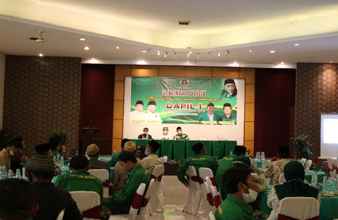 Kab-jepara.kpu.go.id - Merawat persatuan dengan pembangunan merupakan gagasan menarik yang harus didukung oleh seluruh pengurus dan kader partai politik (parpol). Hal tersebut disampaikan Ketua Komisi Pemilihan Umum (KPU) Kabupaten Jepara Subchan Zuhri saat menjadi narasumber dalam seminar politik merawat persatuan dengan pembangunan, yang diselengggarakan Partai Persatuan Pembangunan (PPP) Jepara di RM Maribu Jepara, Jumat (24/12). Kegiatan tersebut diikuti oleh para pengurus dan kader PPP di Daerah Pemilihan (Dapil) I yang meliputi Kecamatan Jepara, Tahunan, Kedung, dan Karimunjawa. Subchan Zuhri mengatakan semua parpol harus memiliki satu visi yang sama yaitu membangun bangsa. “Partai harus hadir sebagai agen kebaikan untuk masyarakat,” kata Subchan. Ia menerangkan di tengah perjalanan berdemokrasi, parpol memiliki banyak peran penting di dalamnya. “Demokratisasi parpol dapat dilakukan dalam bentuk mengagregasikan kepentingan dan nilai-nilai yang ada di kalangan masyarakat serta menampung aspirasi yang ada pada masyarakat. Selain itu parpol juga dapat mendidik serta menawarkan kepada anggota-anggotanya saluran yang mana yang efektif bagi partisipasi politik mereka sepanjang masa antarpemilu,” terang Subchan. Dalam kesempatan yang sama Subchan Zuhri juga kembali mengingatkan parpol untuk mulai mempersiapkan diri dalam menghadapi tahapan pemilu dan pemilihan 2024.” Jika menilik pada pemilu sebelumnya kelengkapan administrasi parpol masih menjadi kendala. Parpol sering keteteran pada tahapan pendaftaran parpol,” kata Subchan. “Parpol harus lebih siap memenuhi persyaratan parpol sebagai peserta pemilu. Ada beberapa dokumen persyaratan yang harus mulai dipersiapkan oleh parpol,” lanjut dia. Seminar politik tersebut juga menghadirkan narasumber Kepala Badan Kesbangpol Kabupaten Jepara Lukito Sudi Asmara. Lukito menyampaikan bahwa parpol merupakan aset penting. “Parpol memiliki posisi strategis dalam pembangunan negara. Salah satu peran parpol adalah dengan menjaga kondusivitas agar pembangunan tidak terhambat. Selain itu parpol juga memiliki kewajiban dalam melakukan pendidikan politik ke masyarakat,” kata Lukito. Narasumber lain dalam kegiatan tersebut adalah Dewan Pimpinan Wilayah (DPW) Partai Persatuan Pembangunan Jawa Tengah H. Istajib. (kpujepara)